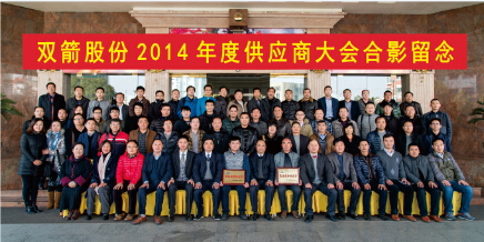 一直以來雙箭秉持“創新拓市場、質優招客商、誠信固基業、互利促發展”的經營理念,與供應商建立長期、穩定、健康的戰略合作伙伴關系,同時在質量、技術上進行不定期交流,以滿足公司發展戰略需要,實現互利互贏、共同發展。2015年,雙箭期待與大家共同努力,實現質量水平、質量價值的新突破;攜手揚帆遠航,利益共享、智慧共贏!