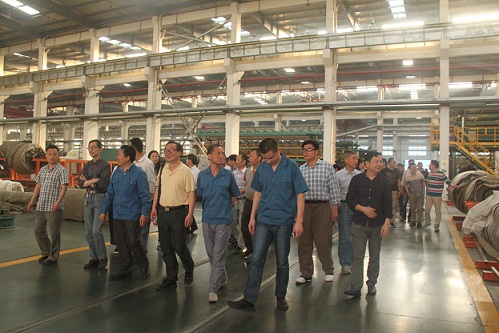 本報訊 5月22日,百余位茅盾中學(xué)黨員教師在學(xué)校黨委書記錢智躍的帶領(lǐng)下來我公司交流參觀。公司黨委書記董事長沈耿亮、副總經(jīng)理沈洪發(fā)和行政部經(jīng)理嚴(yán)宏斌熱情接待。
