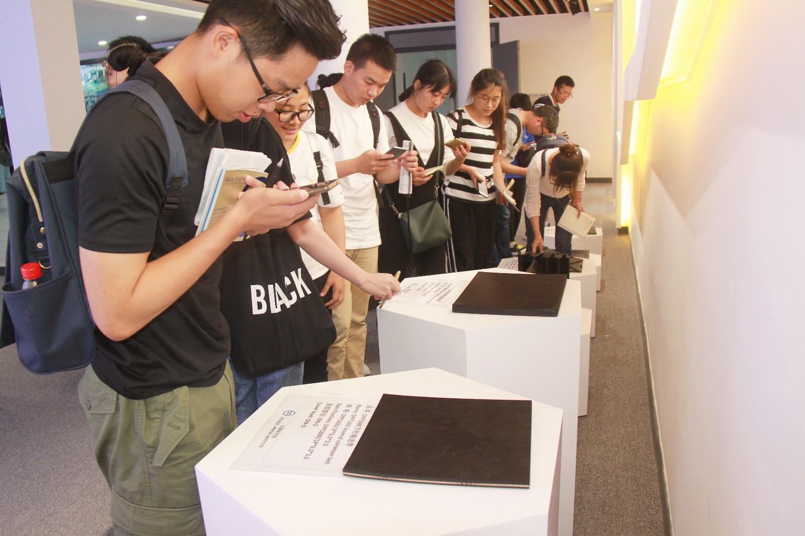 最后,在副總經(jīng)理郎洪峰的帶領(lǐng)下,同學(xué)們實(shí)地參觀了公司的研發(fā)中心、生產(chǎn)車間、實(shí)驗(yàn)室等地,了解部分崗位的基本工作內(nèi)容,讓學(xué)生們對自己未來的職業(yè)規(guī)劃有直觀的感受。同時(shí),郎副總還在現(xiàn)場給同學(xué)們講解了輸送帶生產(chǎn)的流程和操作規(guī)范,及生產(chǎn)工藝的相關(guān)技術(shù)。與同學(xué)們現(xiàn)場互動交流,極大促進(jìn)了同學(xué)們學(xué)習(xí)本專業(yè)的積極性,大家都好奇地觀察車間內(nèi)的情況,詢問詳情,認(rèn)真作筆記。